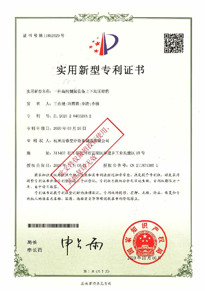 一種高純制氮設備的上下均壓結構